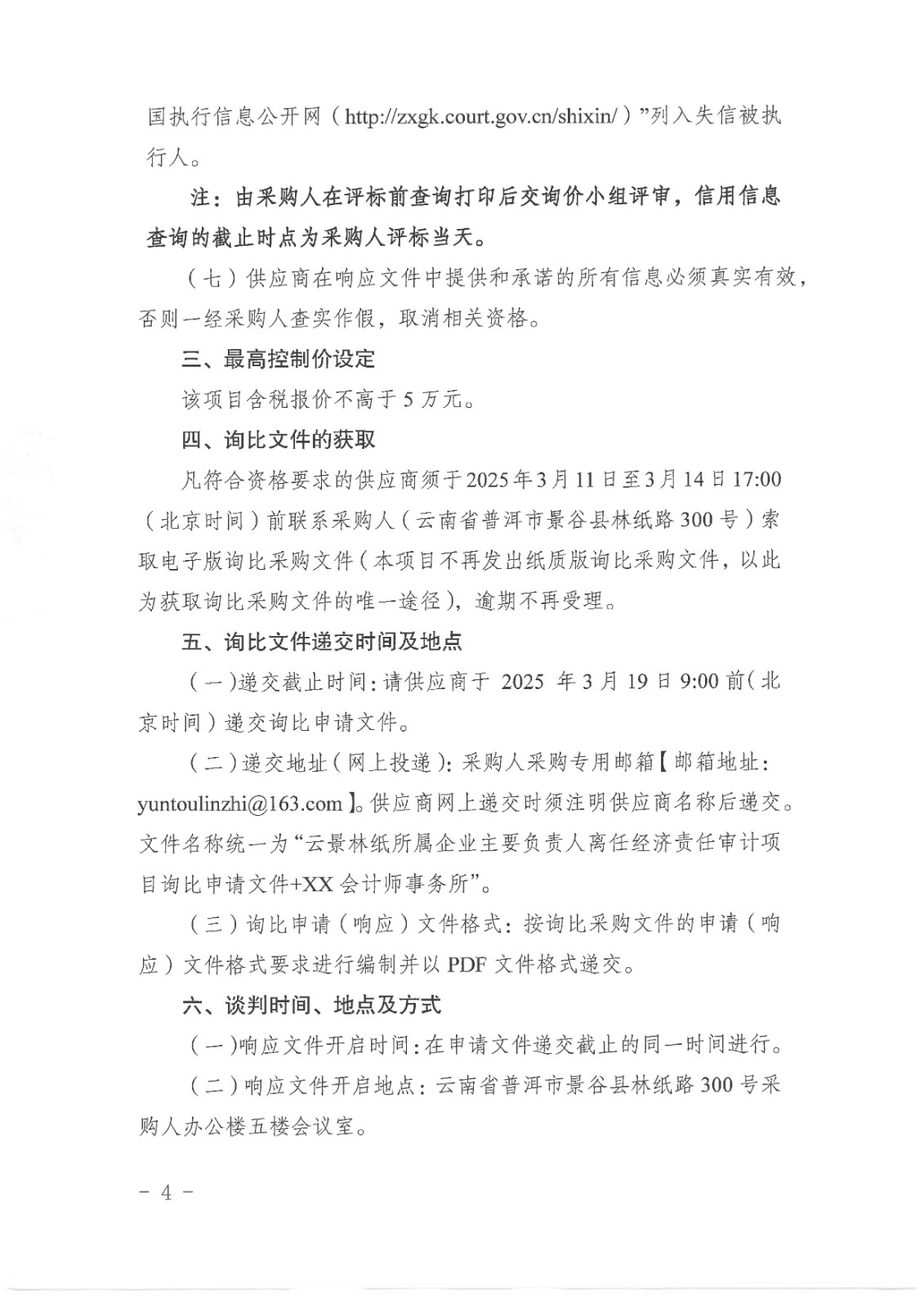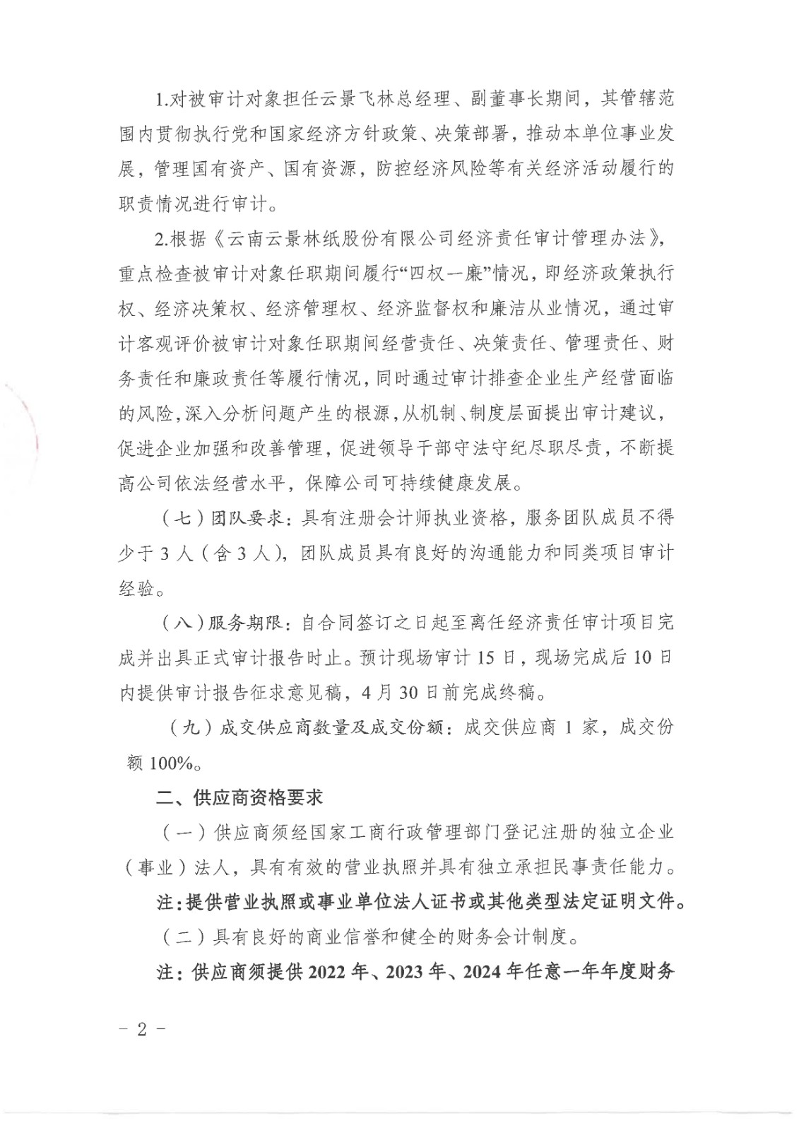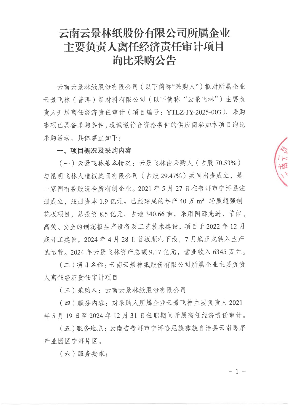云南云景林紙股份有限公司所屬企業(yè)主要負(fù)責(zé)人離任經(jīng)濟(jì)責(zé)任審計(jì)項(xiàng)目詢比采購(gòu)公告