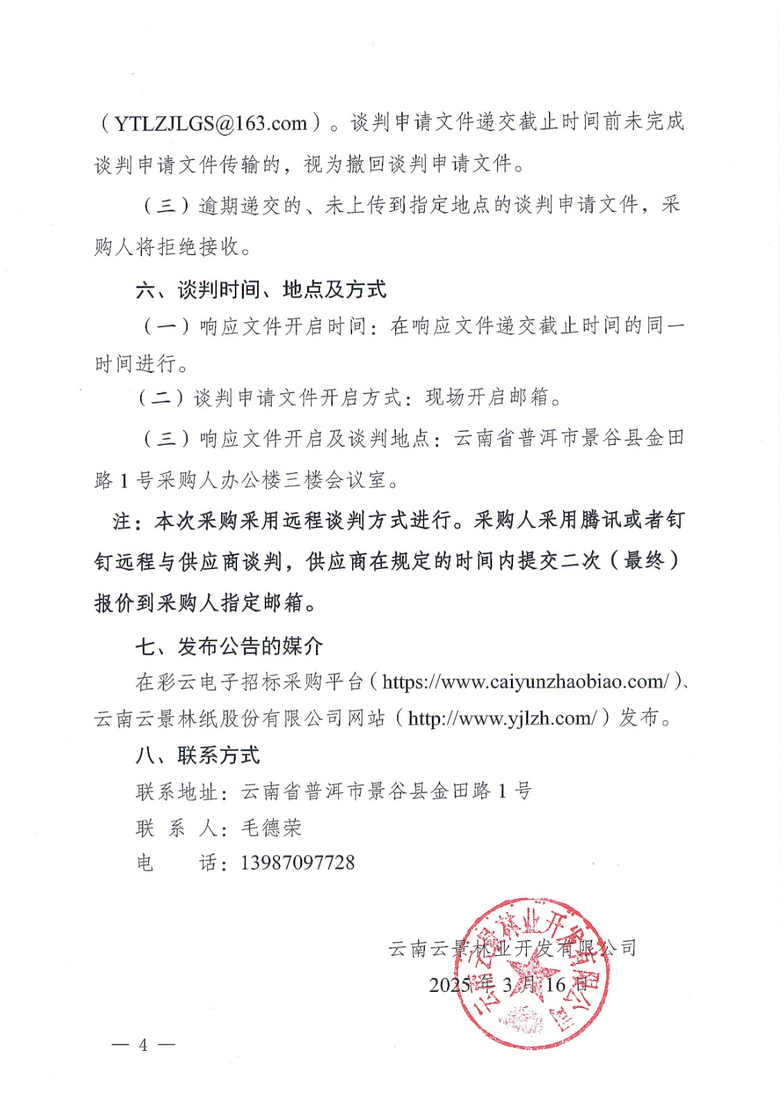 云南云景林業(yè)開發(fā)有限公司2025年度糠采購項(xiàng)目公開談判公告