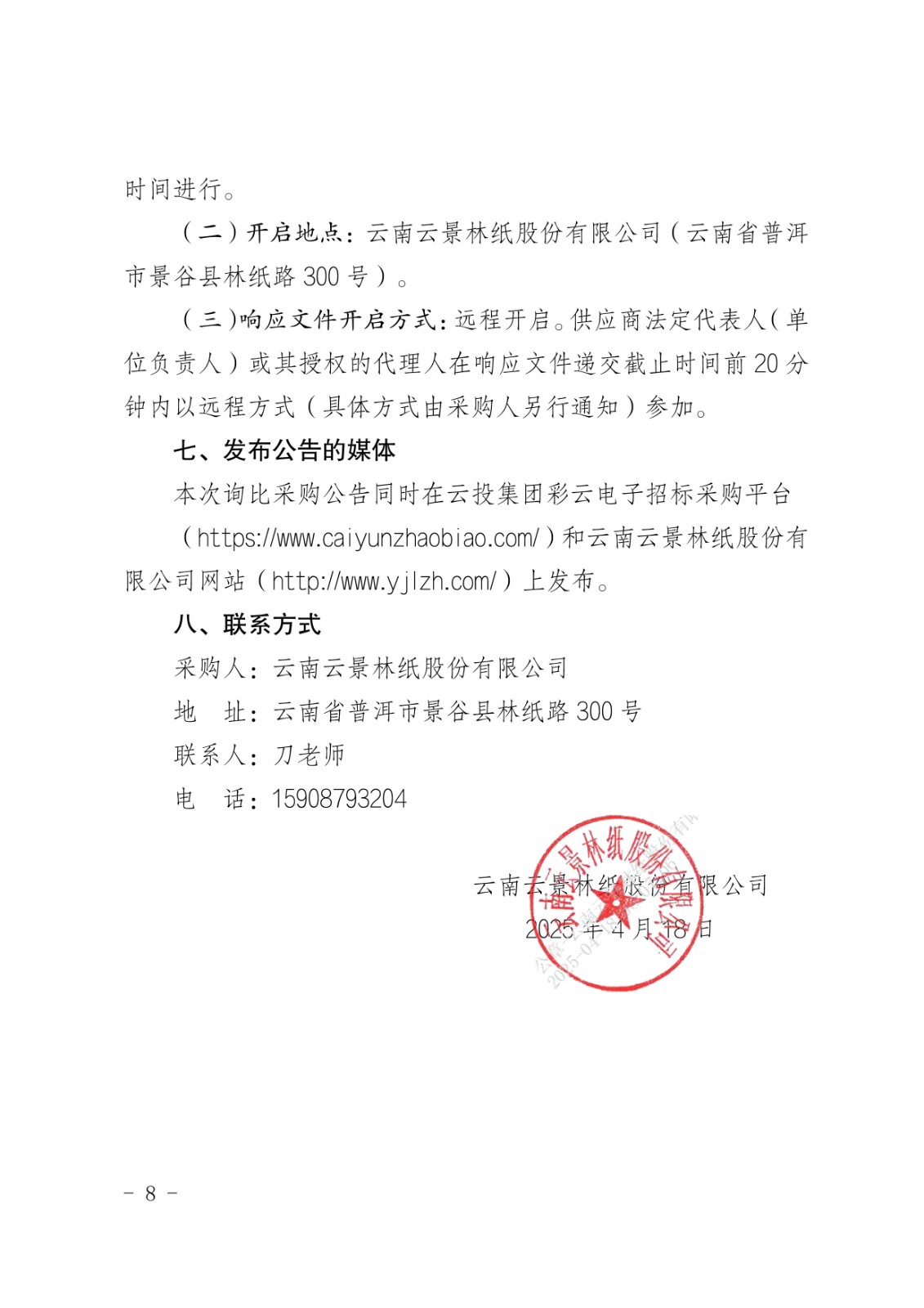 云南云景林紙股份有限公司2025年思景盤紙采購(gòu)項(xiàng)目(二次)采購(gòu)公告