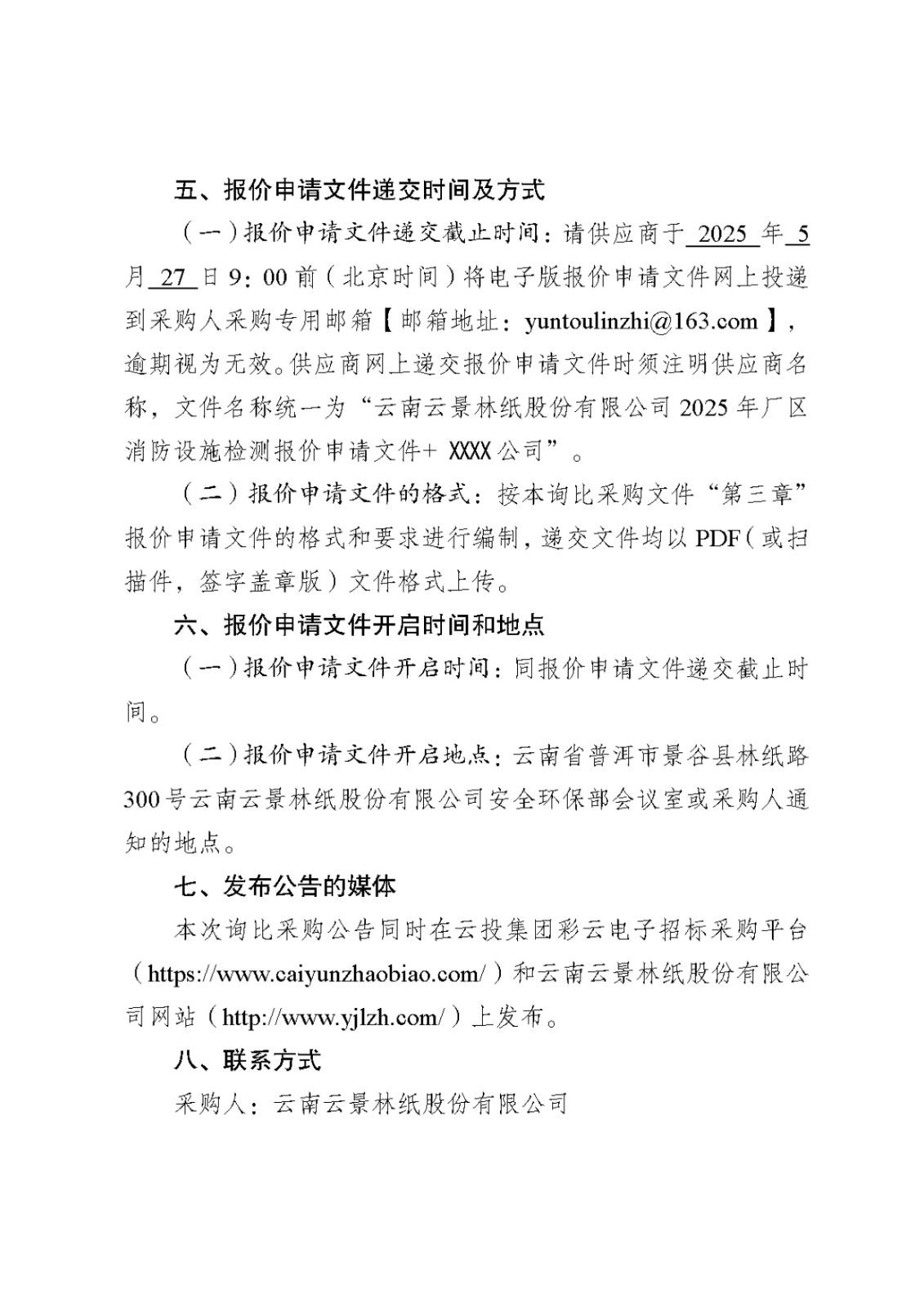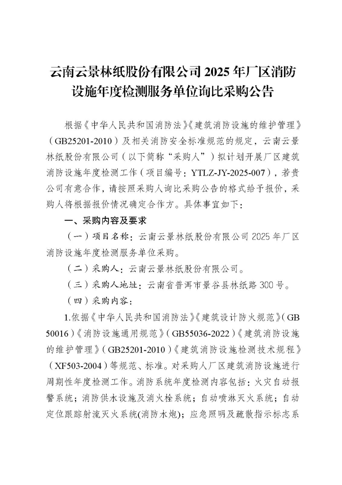 云南云景林紙股份有限公司2025年廠區(qū)消防設(shè)施年度檢測(cè)服務(wù)單位詢比采購(gòu)公告