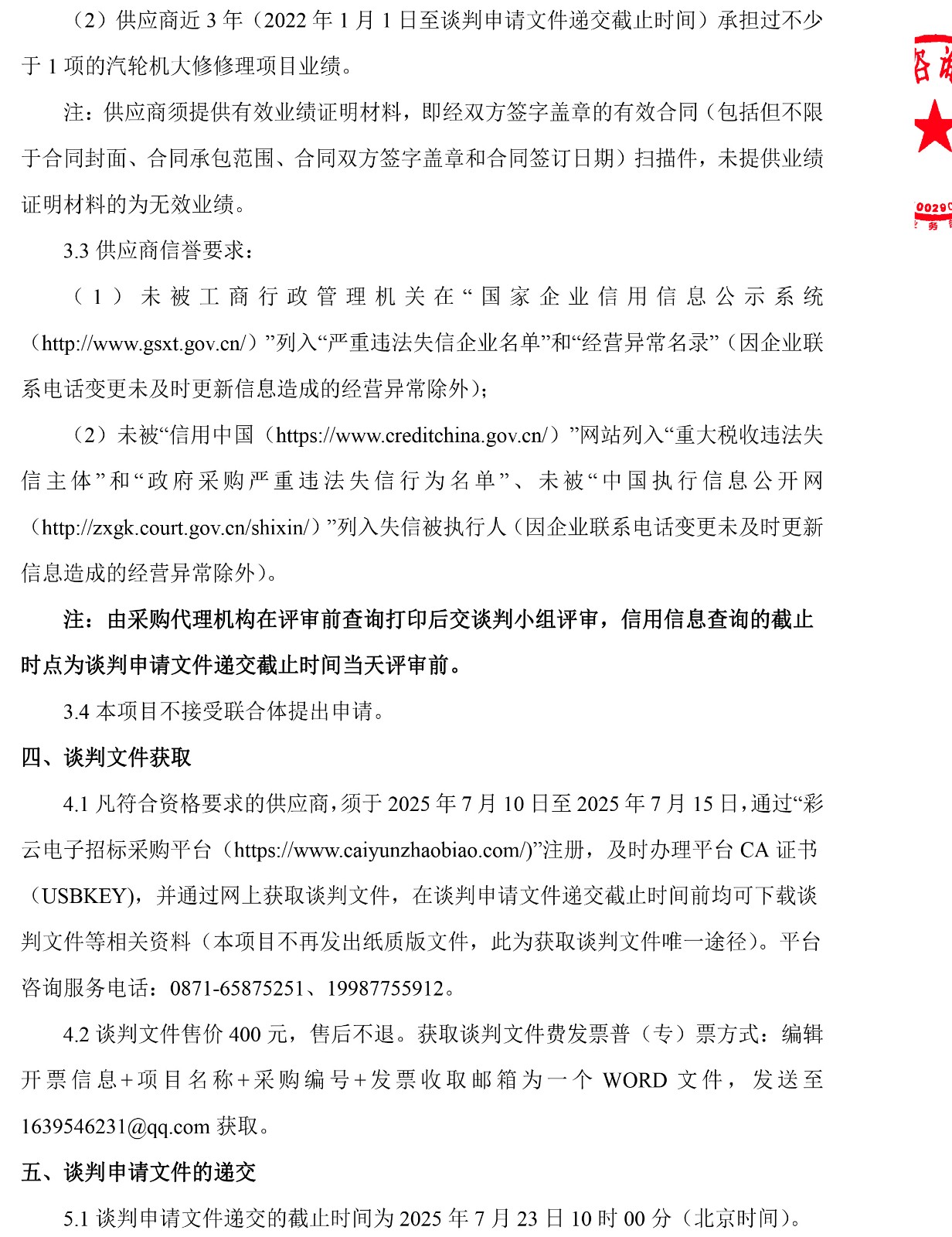 云南云景林紙股份有限公司2025年5#汽輪機大修談判采購公告