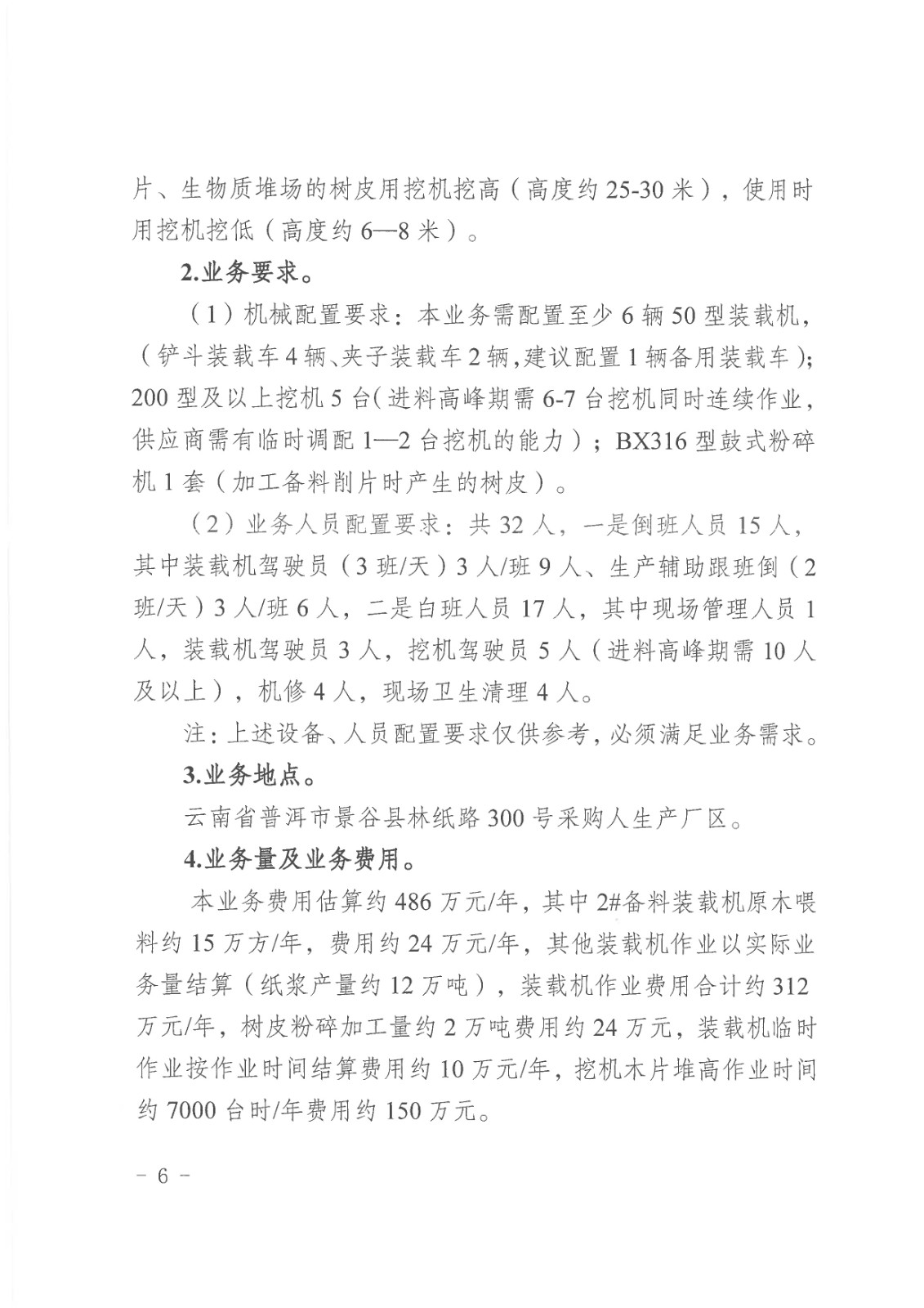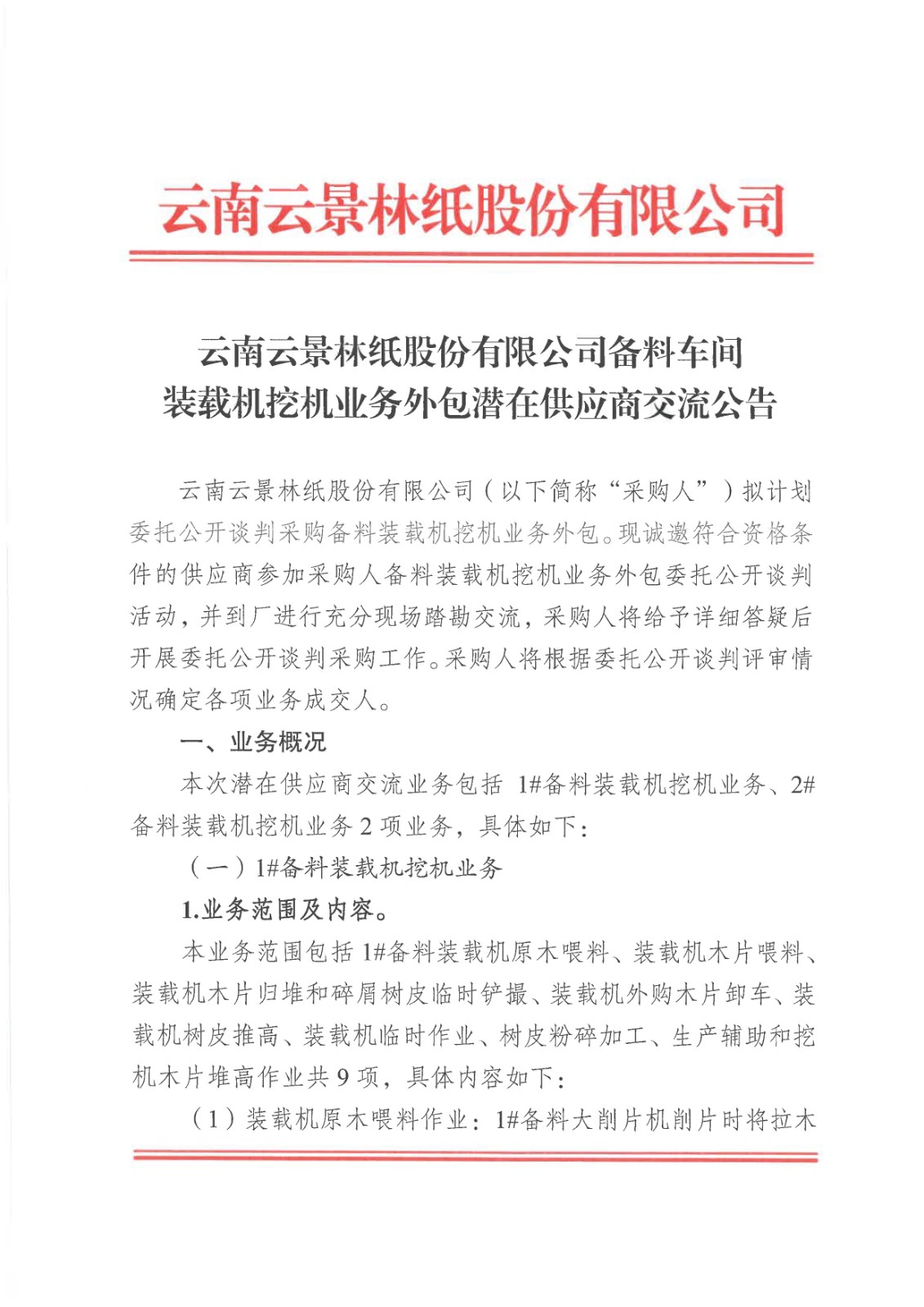 云南云景林紙股份有限公司備料車間裝載機(jī)挖機(jī)業(yè)務(wù)外包潛在供應(yīng)商交流公告