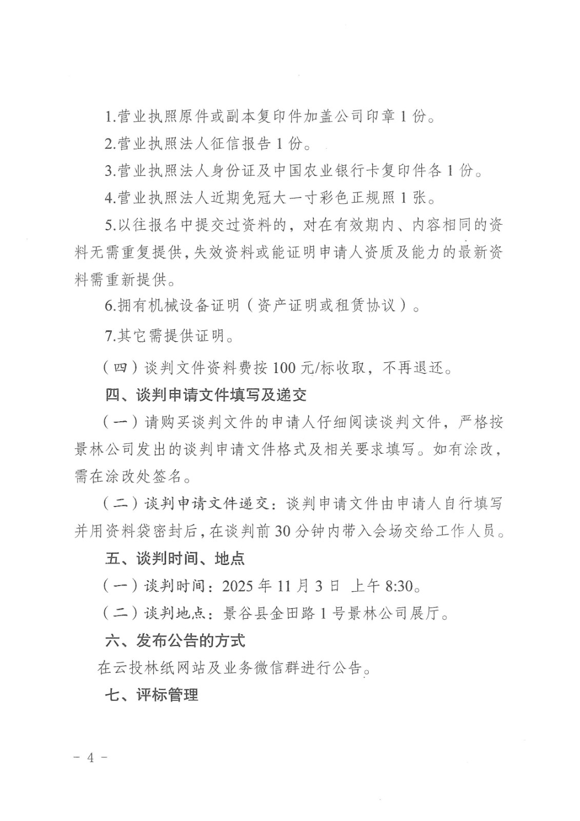 云南云景林紙股份有限公司35kv三紙線線路拆除項目談判公告
