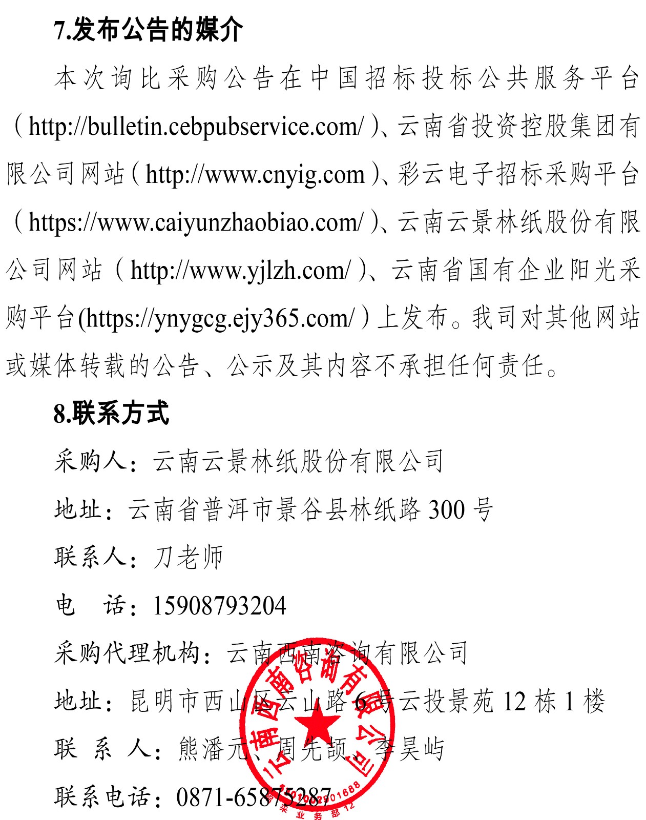 云南云景林紙股份有限公司2026年至2028年思景盤紙采購項(xiàng)目詢比公告