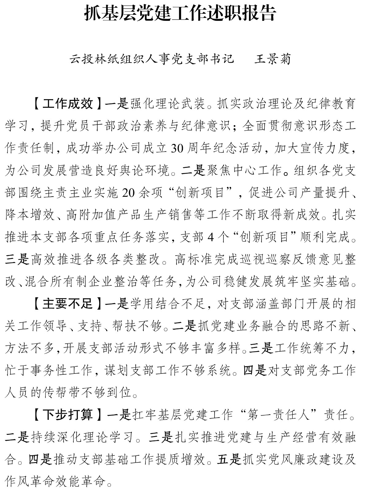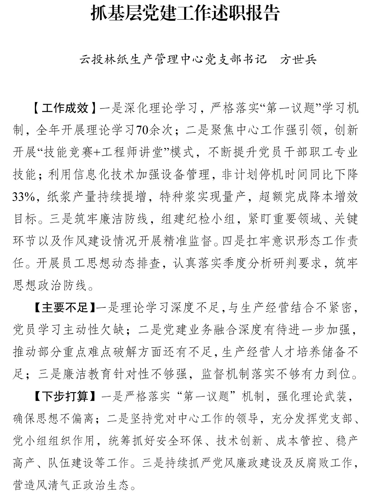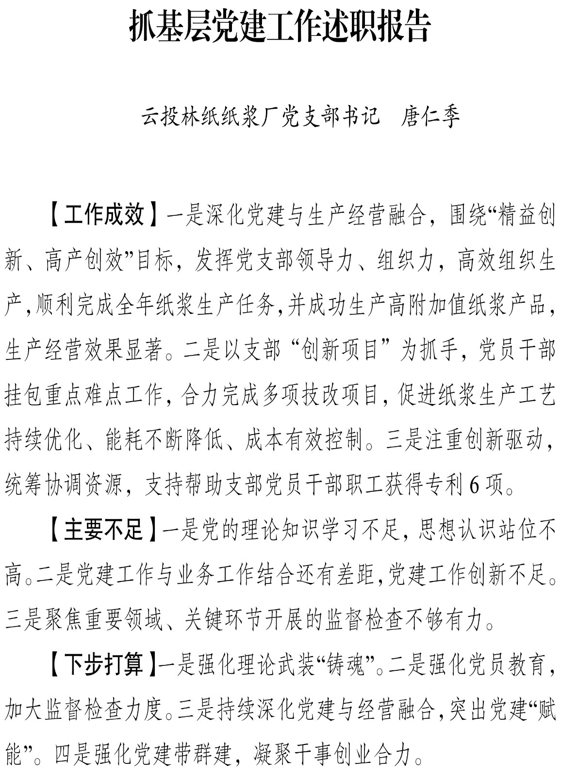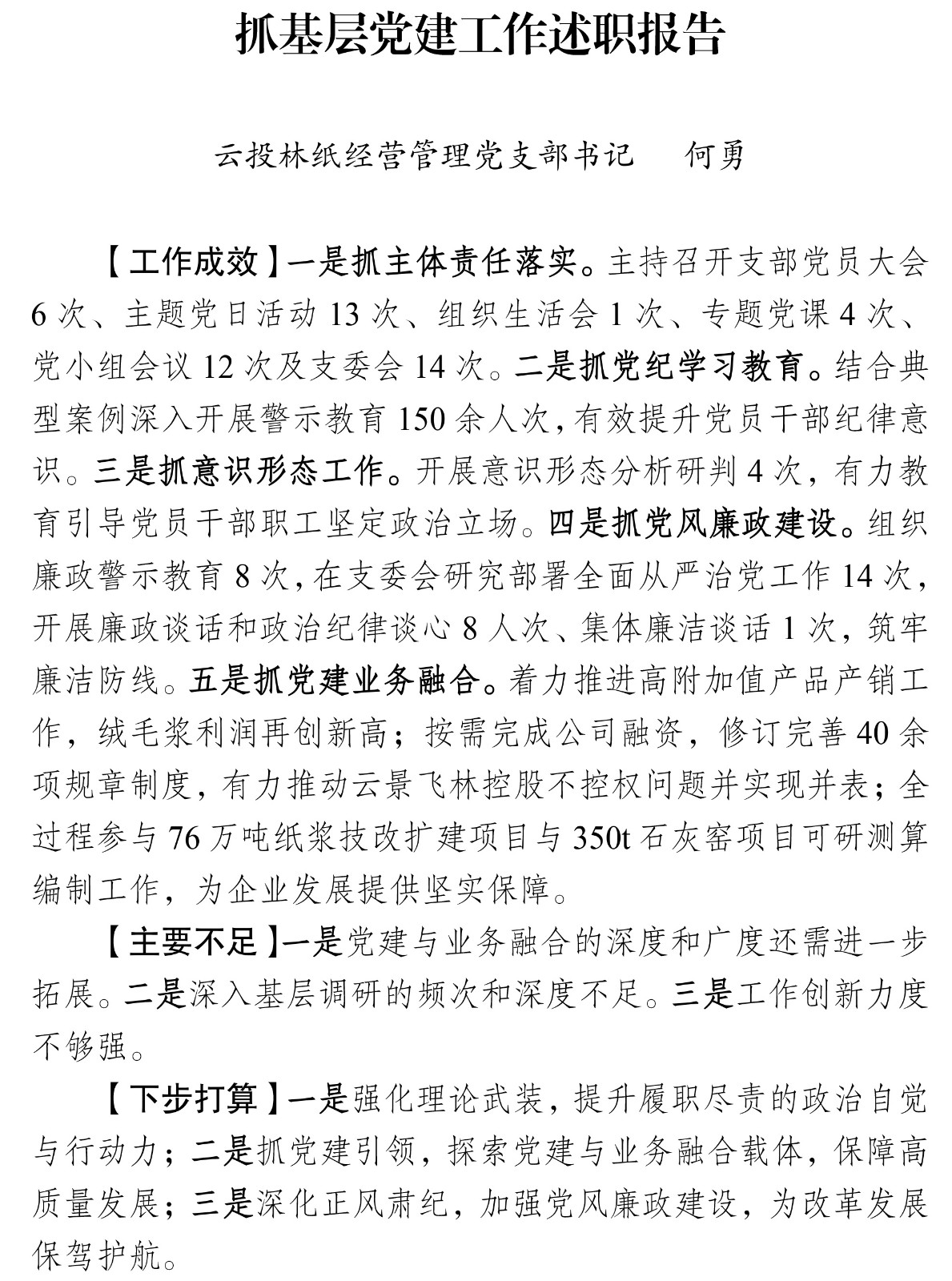 云投林紙黨支部書記抓基層黨建工作述職報(bào)告匯編
