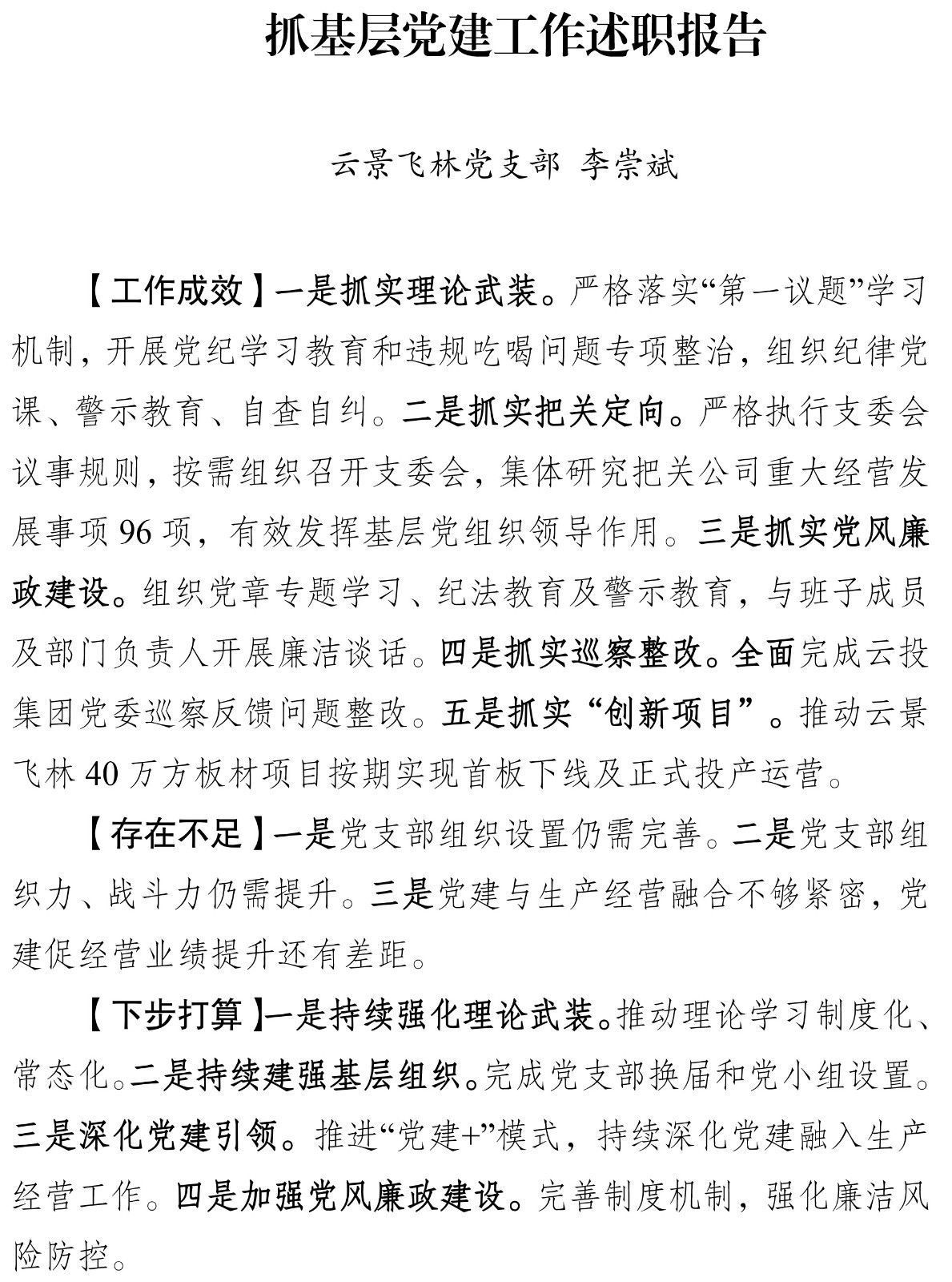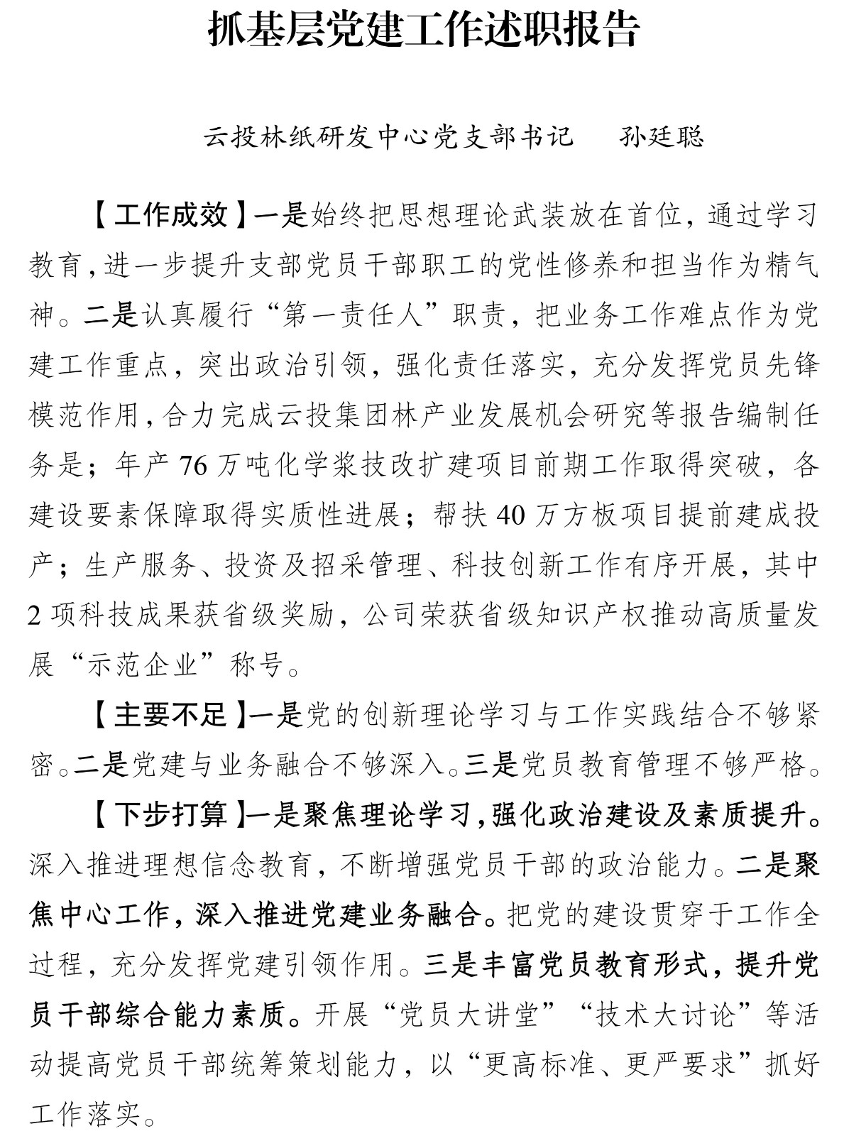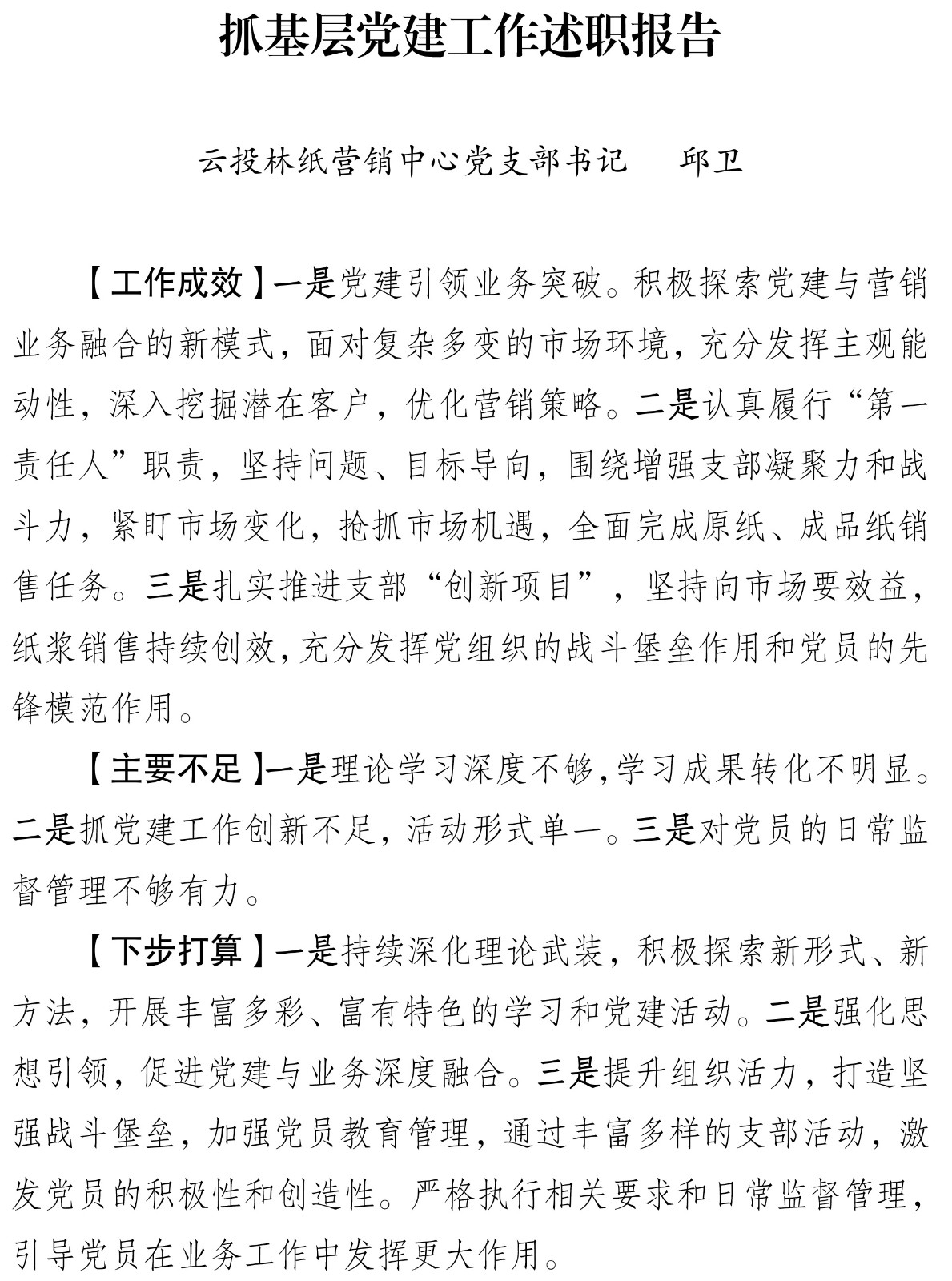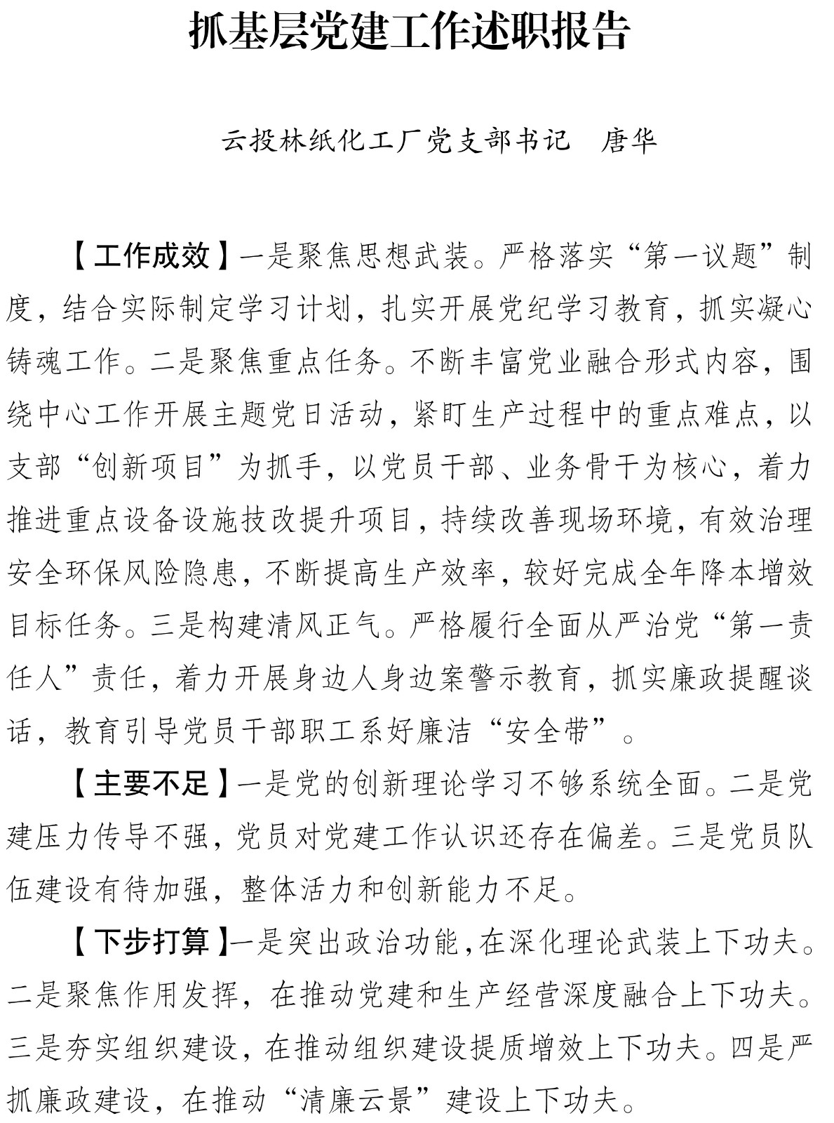 云投林紙黨支部書記抓基層黨建工作述職報(bào)告匯編